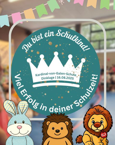 Wir wünschen allen Erstklässlerinnen und Erstklässlern und ihren Eltern eine erfolgreiche Schulzeit an der Kardinal-von-Galen-Schule.