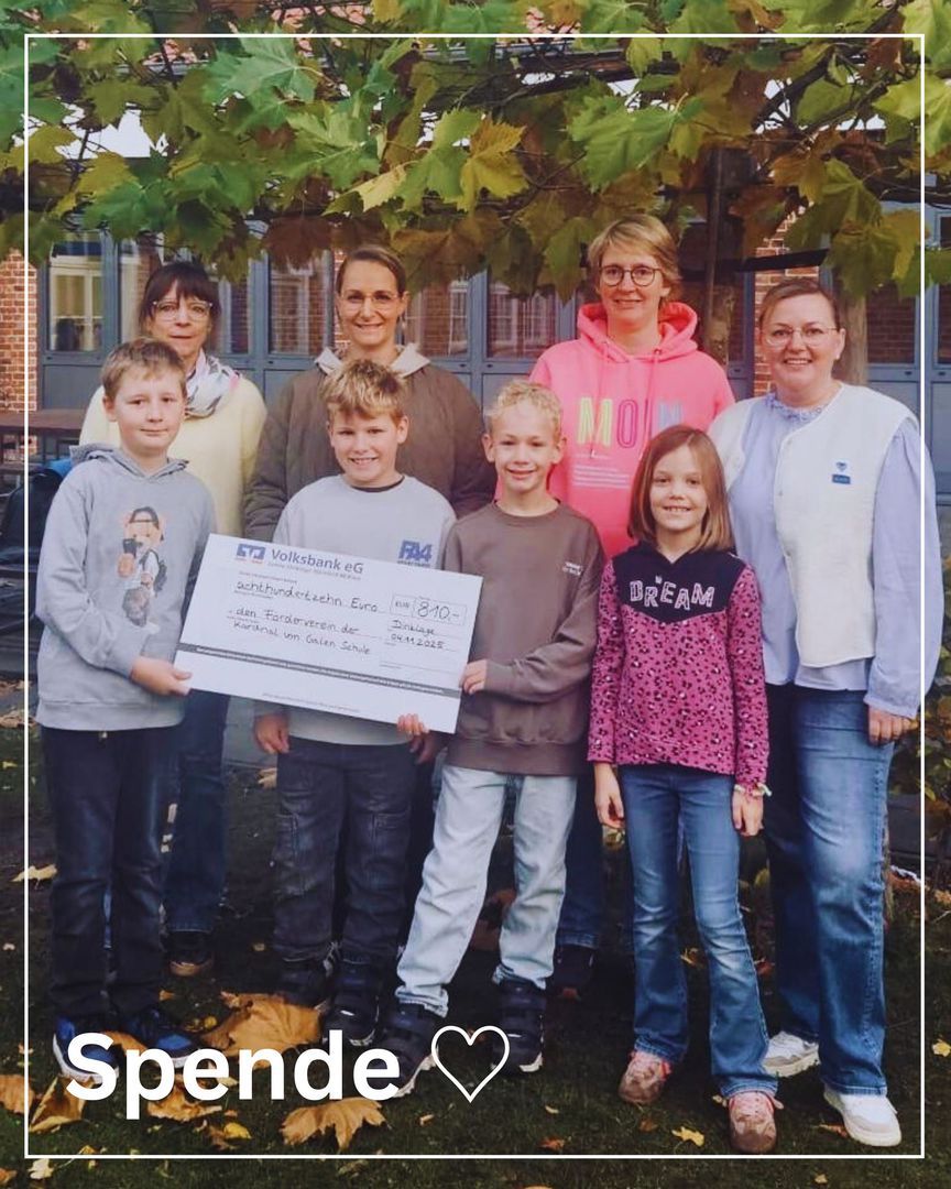 Am 04.11.2025 überreichten Frau Stief und Frau Blömer von der Dinklager Spielzeug- und Kleiderbörse eine Spende in Höhe von 810 €. Frau Bünger nahm die Spende stellvertretend für den Förderverein entgegen. Wir freuen uns schon, das Geld für geplante Projekt einsetzen zu können. Vielen herzlichen Dank!